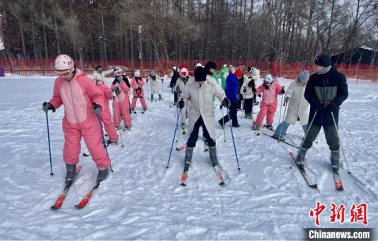 研學(xué)團(tuán)成員在長春凈月潭體驗(yàn)滑雪樂趣!〖质∥穆脧d供圖