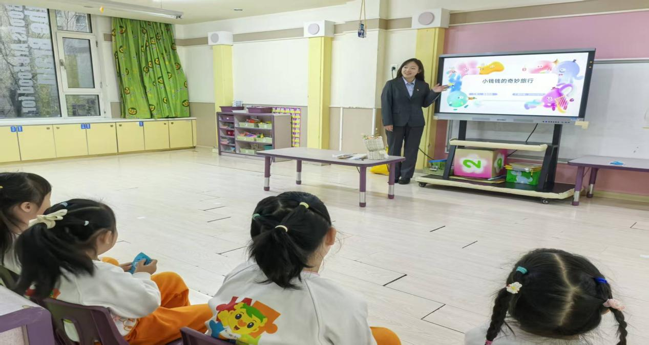 考慮到幼兒注意力特點(diǎn),主講人王琳還設(shè)計(jì)了“錢幣小法官”游戲:她展示不同場(chǎng)景卡片,比如“小朋友幫媽媽保管手機(jī),不隨便點(diǎn)開(kāi)付款鏈接”“陌生人要借手機(jī)轉(zhuǎn)賬,小朋友說(shuō)‘要問(wèn)爸爸媽媽’”,讓孩子們判斷“做得對(duì)不對(duì)”。孩子們積極舉手,有的站起來(lái)模仿卡片里的小朋友說(shuō)話,有的拉著同伴一起討論,原本抽象的安全規(guī)則,變成了能判斷、能模仿的具體行為,現(xiàn)場(chǎng)笑聲與回答聲此起彼伏,連老師都忍不住加入互動(dòng)。