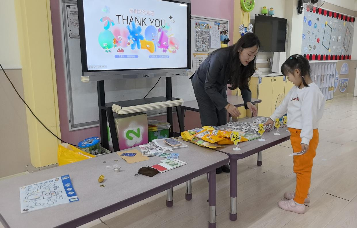 講解“錢幣發(fā)展史”時(shí),工作人員沒(méi)有單純說(shuō)教,而是先拿出提前準(zhǔn)備的貝殼、銅錢模型,笑著問(wèn)小朋友:“大家摸摸看,這些‘古代的錢’和我們現(xiàn)在用的紙幣,摸起來(lái)感覺(jué)一樣嗎?”孩子們立刻圍攏過(guò)來(lái),輪流接過(guò)模型,有的說(shuō)“貝殼滑滑的,像小扇子”,有的舉著銅錢喊“這個(gè)中間有洞,能穿繩子!”。工作人員順著孩子們的發(fā)現(xiàn)繼續(xù)引導(dǎo):“以前沒(méi)有手機(jī)支付,人們就用貝殼、銅錢買東西,現(xiàn)在我們用紙幣、刷手機(jī)付錢,但不管哪種方式,都要好好保護(hù)自己的‘錢’哦!陛p松地觀察與對(duì)話,讓孩子們自然理解了貨幣的變化。