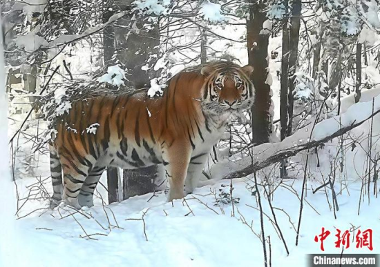 12月3日,長白山保護區(qū)工作人員發(fā)現(xiàn)的野生東北虎,拍攝時與老虎距離不到10米!(吉林省林業(yè)和草原局供圖)