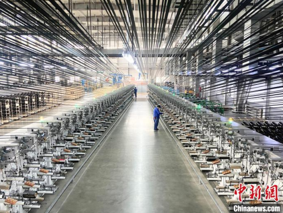 工人正在碳纖維生產(chǎn)線忙碌,這一新材料可應(yīng)用于無人機(jī)制造!〖质形麄鞑抗﹫D