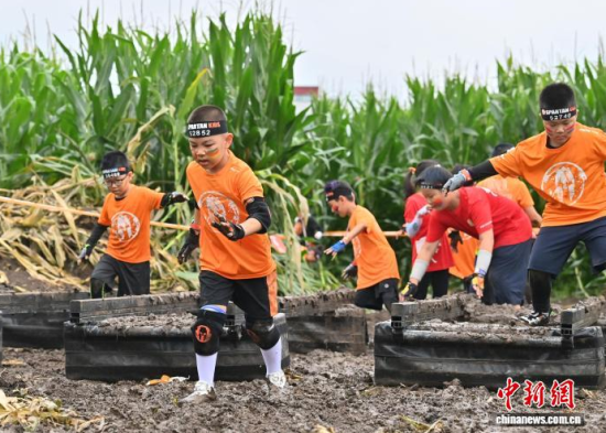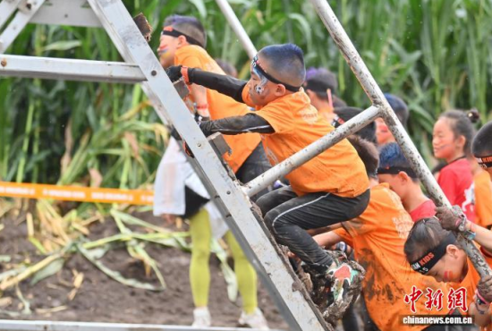 7月25日,2025斯巴達(dá)勇士兒童賽長春站在卡倫湖力旺實驗學(xué)校開賽。當(dāng)天大雨傾盆,參賽的小選手們熱情不減,紛紛化身“小勇士”,在泥濘的賽道上勇闖障礙、攀爬坡道。圖為參加斯巴達(dá)勇士兒童賽的選手在比賽中。中新社記者 張瑤 攝