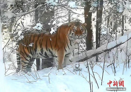 2024年12月3日,長白山保護區(qū)工作人員發(fā)現的野生東北虎,拍攝時與老虎距離不到10米。(資料圖)(吉林省林業(yè)和草原局供圖)