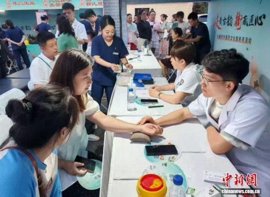 “岐黃古韻 街藏匠心”長春市中醫(yī)藥文化服務(wù)月活動正在進行中,吉林省首條“中國歷史文化名街”——新民大街上,飄起陣陣藥香。從針灸、刮痧、耳穴壓豆,到品嘗藥膳茶飲、集章打卡、中醫(yī)文創(chuàng)產(chǎn)品展示,趣味十足的中醫(yī)藥文化集市與歷史文化街區(qū)相融合,引來不少逛街游玩的年輕人,并快速轉(zhuǎn)為“中醫(yī)粉”。