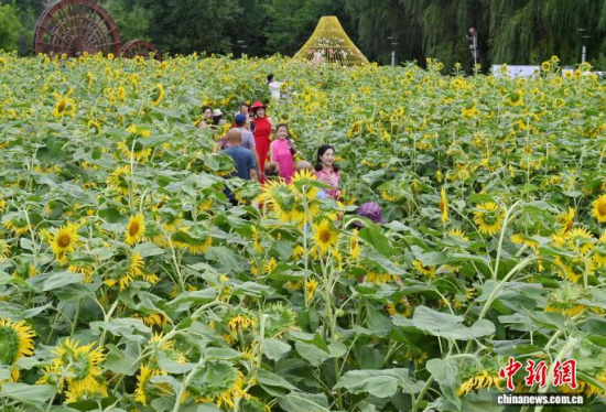 8月25日,長(zhǎng)春市的長(zhǎng)春公園內(nèi),5000平方米的向日葵盛開(kāi),吸引了大批游客前來(lái)觀賞。當(dāng)天,“秋之韻·葵心向陽(yáng)”秋季系列活動(dòng)拉開(kāi)帷幕。中新社記者 張瑤 攝