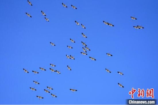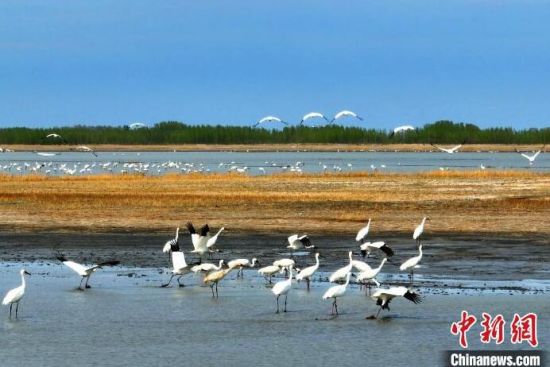 立夏季節(jié)在莫莫格濕地中停歇的白鶴種群!∨岁申拧z
