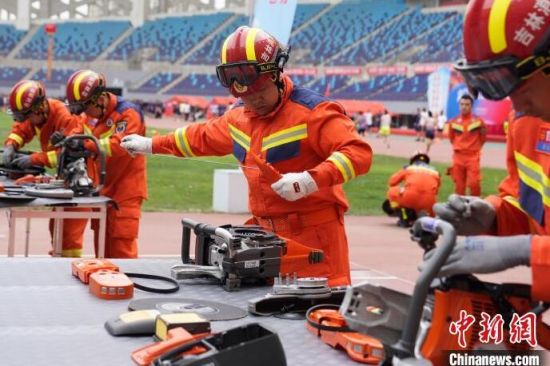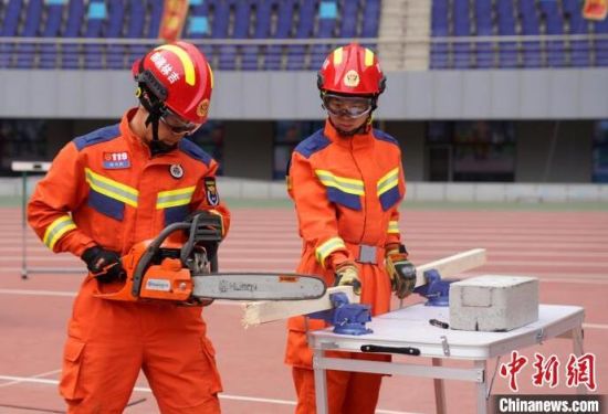 消防指戰(zhàn)員在進(jìn)行無齒鋸組裝!埇 攝