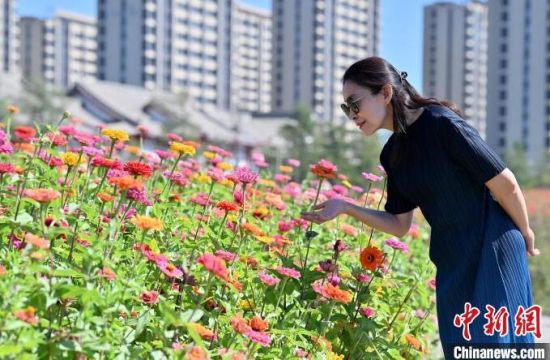 9月12日,在長春北湖花海,姹紫嫣紅的花朵在綠樹藍(lán)天的映襯下構(gòu)成了一幅美麗的秋色畫卷,吸引眾多游客前來觀賞。