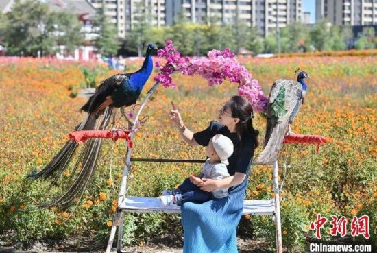 游客在花海和孔雀互動(dòng)。張瑤 攝