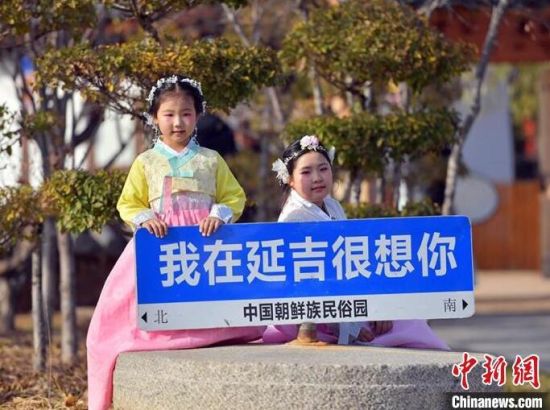 11月4日,在吉林省延邊朝鮮族自治州延吉市的中國朝鮮族民俗園內(nèi),游客身著朝鮮族服飾拍照留念。延邊是中國最大的朝鮮族聚居區(qū),濃郁的民族風(fēng)情吸引大量游客前來觀光體驗。