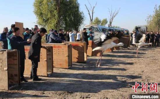 中新網(wǎng)長春11月19日電 (張瑤 王萬峰)吉林省林業(yè)和草原局19日介紹,該局近日組織野生動物救護部門將救助的11只東方白鸛成功護送到天津七里海國家濕地公園與已遷徙至那里的種群匯合。這是吉林省第一次大規(guī)?缡∽o送“鳥界國寶”東方白鸛歸隊。