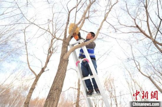 長春一公園連續(xù)三年設(shè)置鳥巢助野生鳥過冬