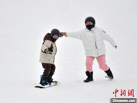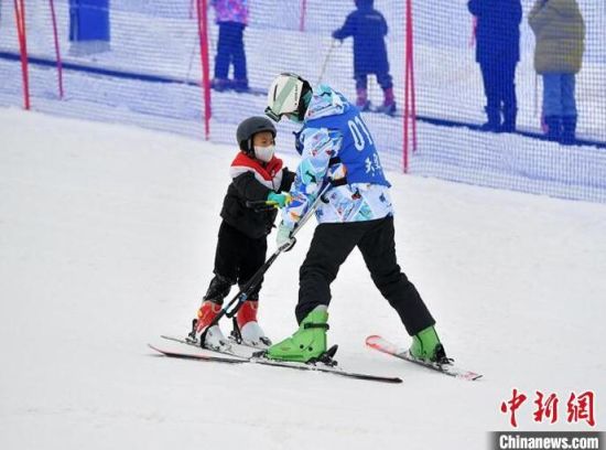 11月26日,在位于吉林遼源的天陸山滑雪場,很多小朋友在家長的帶領(lǐng)下,樂享冰雪運動。