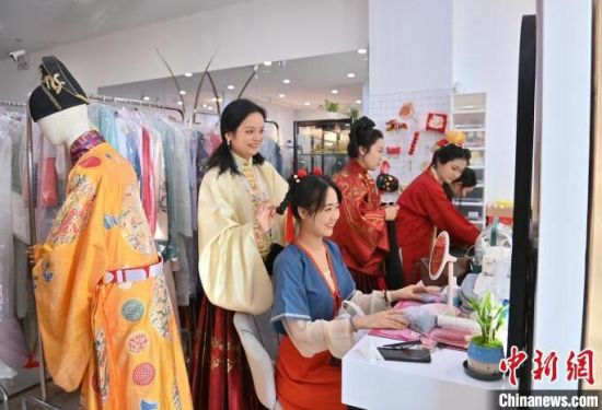 市民在拍照留念。張瑤 攝市民在試穿漢服。張瑤 攝市民在體驗漢服妝造。張瑤 攝市民在體驗漢服妝造。張瑤 攝市民在合影留念。張瑤 攝