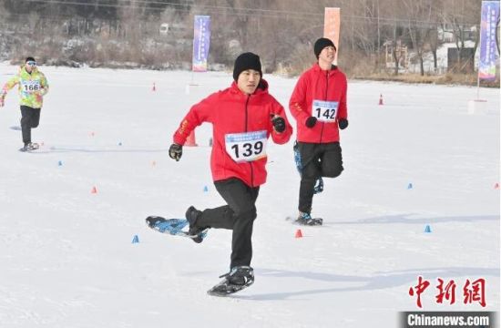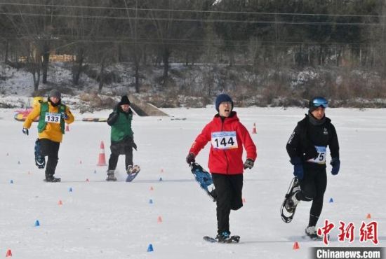 選手在雪鞋走比賽中激烈比拼。張瑤 攝