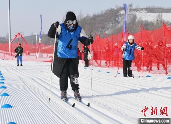 1月23日,吉林長春,運動員在比賽中激烈比拼。當(dāng)天,第八屆中國殘疾人冰雪運動季冬季特奧項目推廣活動暨吉林省主場活動在長春市蓮花山滑雪場舉行。本次活動設(shè)有特奧越野滑雪、特奧雪鞋走2個大項、6個類別的比賽,吸引來自中國各地140名運動員參賽。(完)