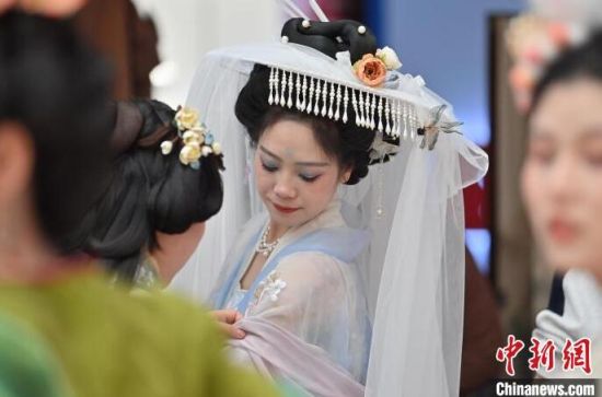 漢服愛好者在整理服裝。張瑤 攝