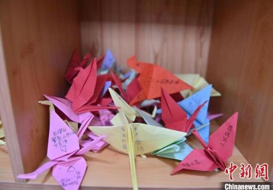 這些千紙鶴是轄區(qū)學生們送來的禮物,每個千紙鶴上面都有一句祝福的話,讓“木蘭警務團”的女警們十分感動!埇 攝