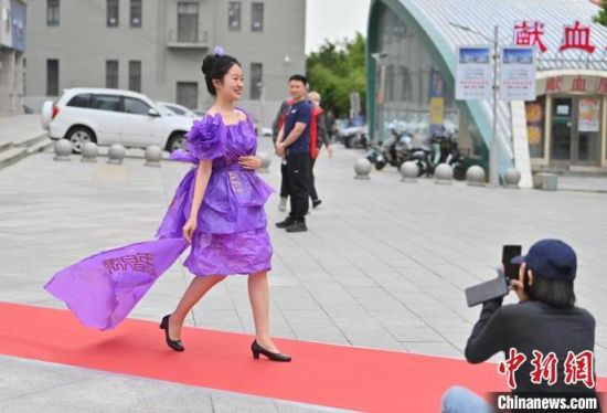 6月5日,吉林長春,模特身穿綠色環(huán)保時(shí)裝走秀。值此世界環(huán)境日來臨之際,長春開展“塑制霓裳·環(huán)保領(lǐng)航”綠色環(huán)保時(shí)裝秀表演活動(dòng)。民眾將廢舊的報(bào)紙、塑料袋等廢舊物品變成了美麗的衣裳,宣傳環(huán)保意識(shí)。張瑤 攝