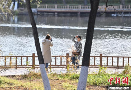 10月20日,吉林長春,市民外出賞秋景。秋色漸濃,長春各處秋景怡人,吸引大量市民利用周末時間踏葉賞秋,享受秋日美好時光。中新社記者 張瑤 攝