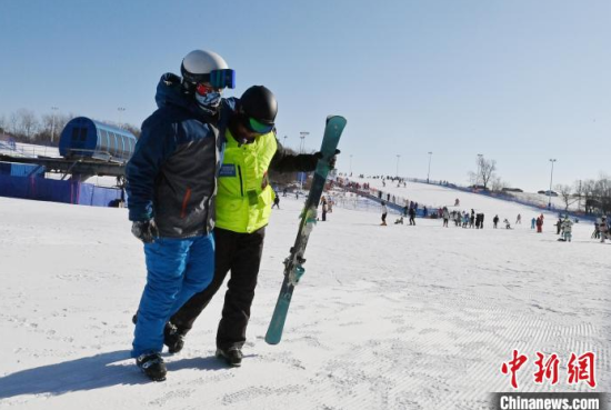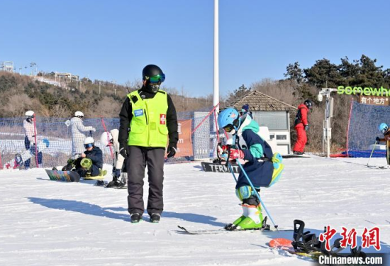 1月15日,在位于長春的天定山滑雪場,何海東在檢查雪道護(hù)網(wǎng)。何海東是一名滑雪巡救員,雪季期間,雪友數(shù)量激增,何海東的工作也變得異常繁忙。他要在零下二十?dāng)z氏度的天氣中日行三萬步,全面巡查雪道環(huán)境,排查安全隱患,如有意外他將第一時(shí)間對(duì)傷者實(shí)施救助。中新社記者 張瑤 攝