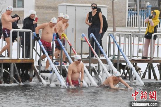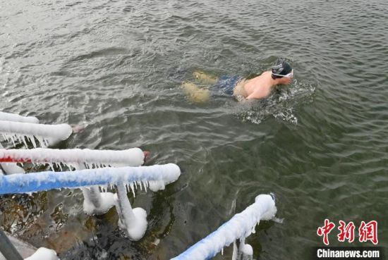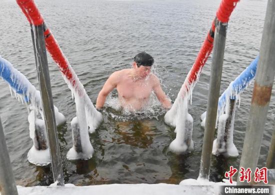2月7日,在長春市南湖公園內(nèi),冬泳愛好者在零下19攝氏度的嚴(yán)寒天氣中冬泳鍛煉身體。 中新社記者 張瑤 攝