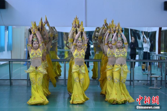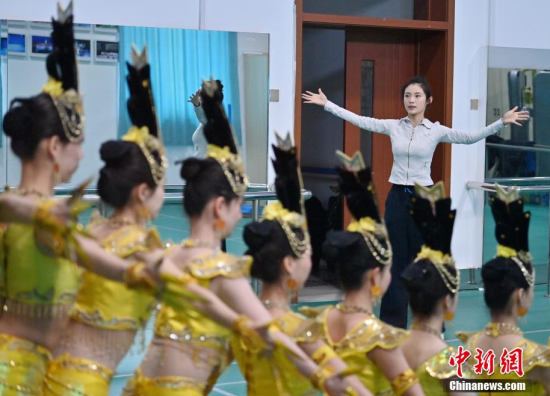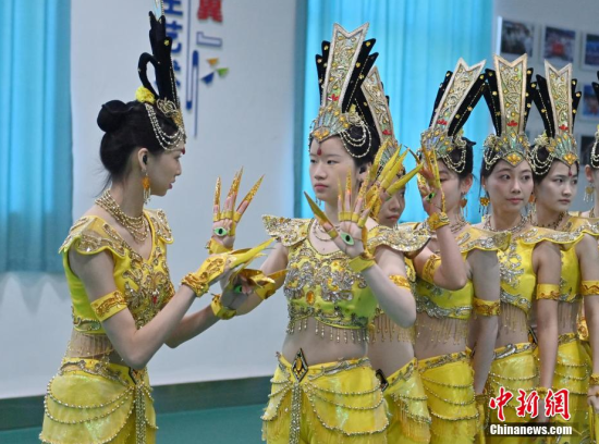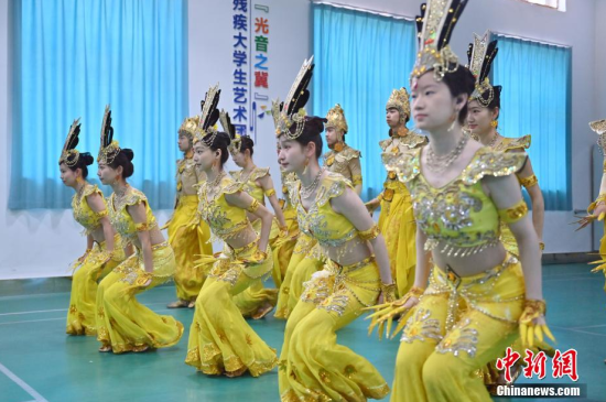 4月22日,在長春大學(xué)特殊教育學(xué)院,學(xué)生們在排練《千手觀音》。這所學(xué)院擁有一支由29名聽障學(xué)生組成的舞蹈團(tuán)隊(duì)。他們因?qū)ξ璧傅臒釔鄱奂谝黄,在無聲的世界中舞出他們精彩的人生篇章。中新社記者 張瑤/攝