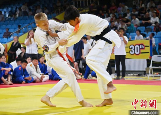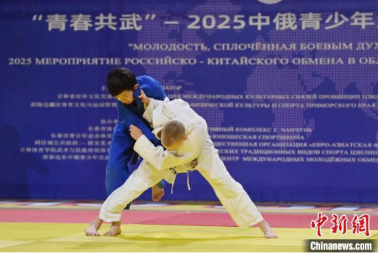 6月15日,“青春共武·中俄青少年武術(shù)交流活動(dòng)” 在長春市體育館拉開帷幕。賽場上,來自俄羅斯柔術(shù)協(xié)會(huì)的140 名成員與長春市業(yè)余體育運(yùn)動(dòng)學(xué)校的 100 名學(xué)生輪番登臺,展開激烈競技。圖為俄羅斯青少年進(jìn)行柔術(shù)比賽。中新社記者 張瑤 攝