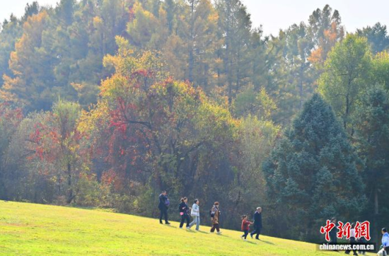 10月14日,隨著氣溫降低,長(zhǎng)春秋色漸濃,在凈月潭國(guó)家森林公園,大量市民前來賞秋。中新社記者 張瑤 攝